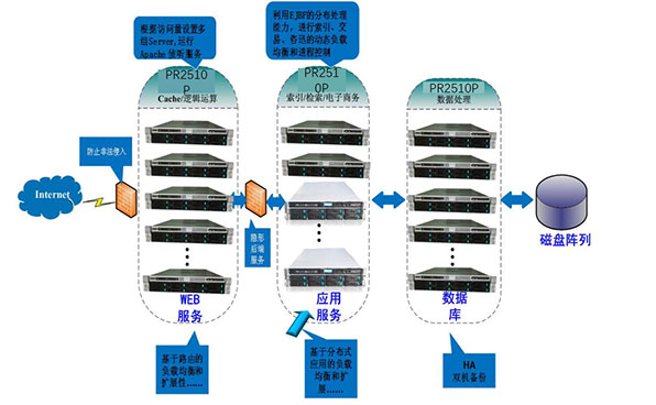 xx的3G无线搜索引擎,除了数以亿次的用户访问之外,还涉及到大量数据的处理,比如,索引,检索等等,这都需要大规模的计算技术。日均上亿次的搜索量对服务器提出了较高的要求:首先,要有很高的稳定性。其次,要有很强的数据检索、处理能力;再次,要有很强的扩展能力,以适应将来进一步发展的需要;最后,简便的服务器管理也是很重要的因素,以减少日常维护工作和维修时间,降低总拥有成本。