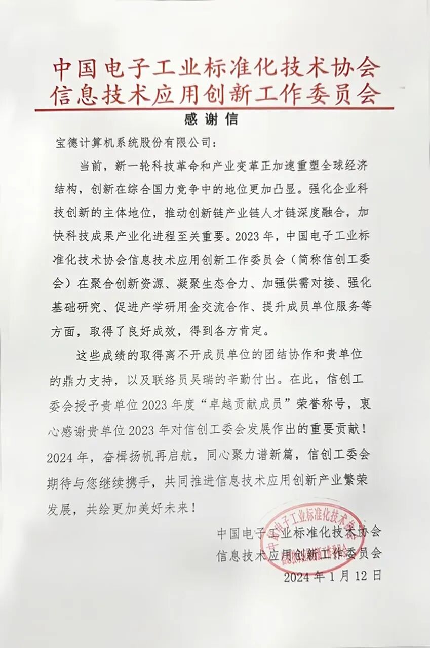 今日,中国电子工业标准化技术协会信息技术应用创新工作委员会(简称“信创工委会”)向mg电玩娱乐在线网址发来感谢信,对mg电玩娱乐在线网址在2023年度信创领域的辛勤付出和努力给予高度赞许和衷心感谢。基于mg电玩娱乐在线网址的卓越表现和突出贡献,信创工委会授予mg电玩娱乐在线网址2023年度“卓越贡献成员单位”荣誉称号。这是mg电玩娱乐在线网址连续两年获得此项殊荣,充分彰显了mg电玩娱乐在线网址在信创领域的深耕实干和强大的品牌实力。