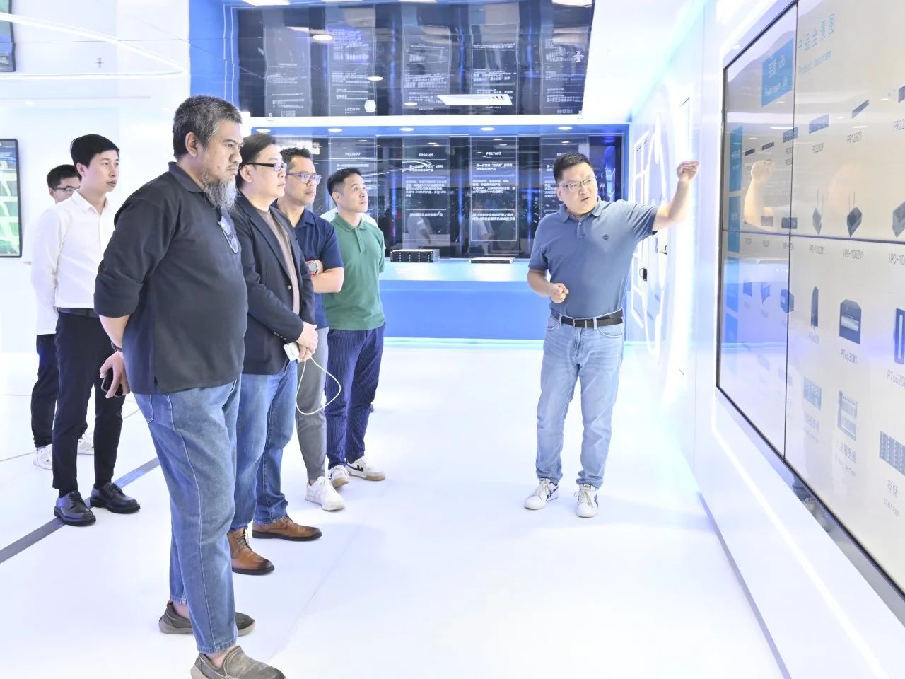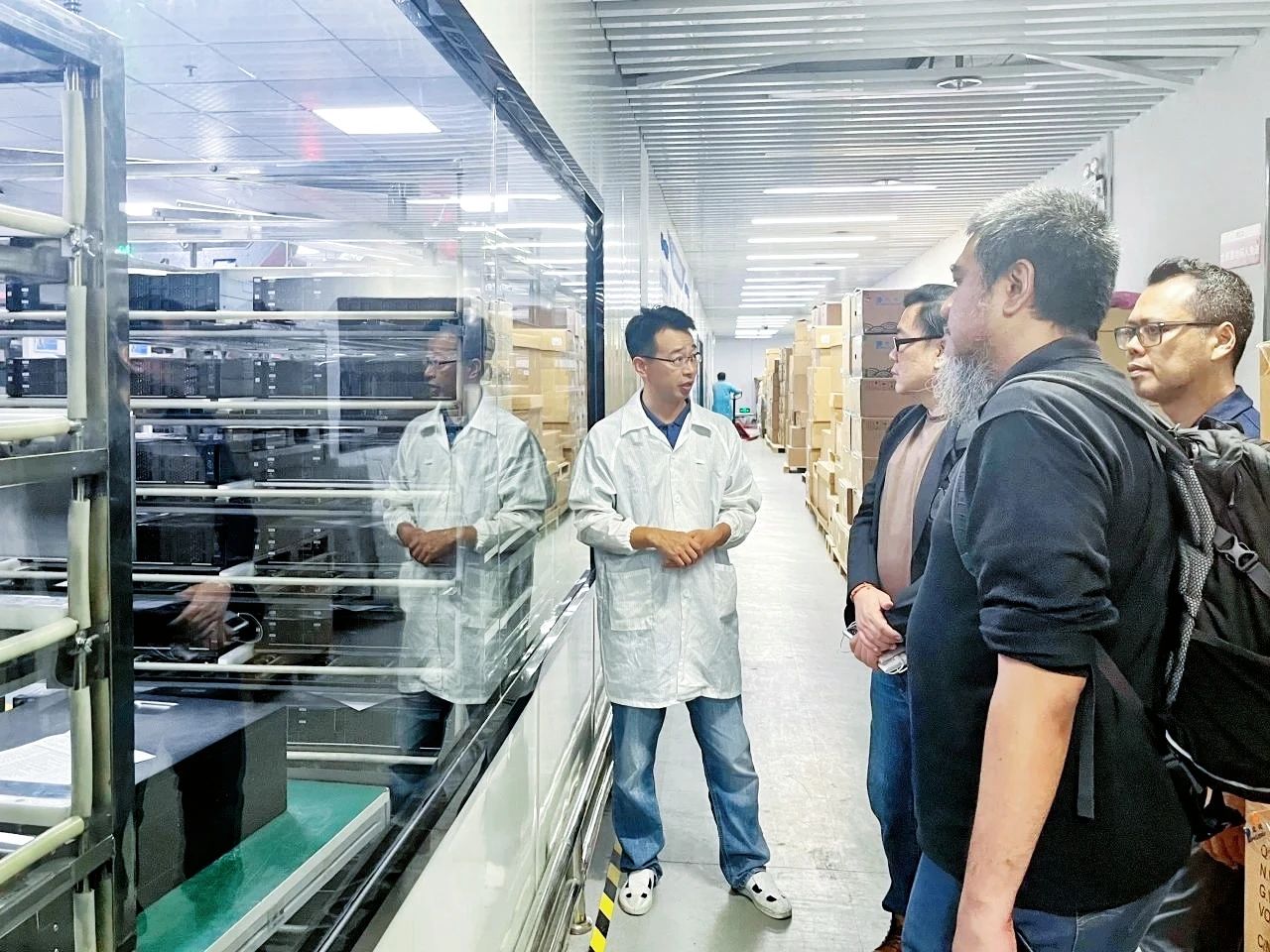 在黄总、彭总等领导讲解和陪同下,来宾们参观了mg电玩娱乐在线网址展厅和生产线,详细了解了mg电玩娱乐在线网址计算的发展历程、业务布局和战略规划,深入了解了mg电玩娱乐在线网址在各行各业取得的数字化建设成果。代表团一行对mg电玩娱乐在线网址多年来在竞争激烈的服务器市场中长期保持稳健发展态势、持续深化数智创新、积极推动数字与实体经济深度融合,以及在数字化转型领域所取得的创新成就与成功经验给予了高度赞赏。