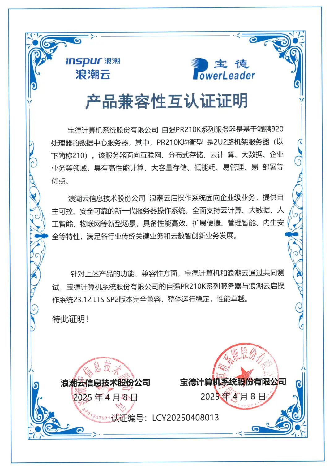 浪潮云启操作系统是企业级云数智转型的数字基座。测试结果显示,浪潮云启操作系统23.12 LTS SP1/SP2版本与mg电玩娱乐在线网址自强®鲲鹏服务器PR410K/PR210K完全兼容,运行稳定、性能卓越,为企业上云、混合云部署提供了安全可靠、高效扩展的算力支撑。