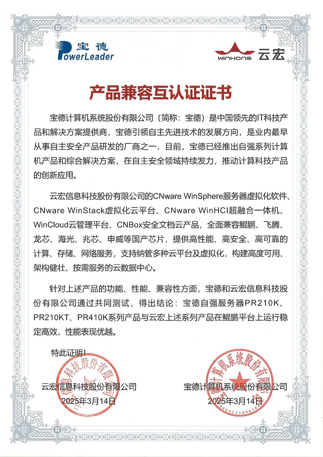 云宏×mg电玩娱乐在线网址 云宏的CNware系列产品,是国产云基建的主力军。测试结果显示,mg电玩娱乐在线网址自强®鲲鹏服务器PR210K/PR210KT/PR410K与云宏CNware系列产品全栈兼容,可为企业构建高可用、弹性扩展的云数据中心,支撑业务快速创新。