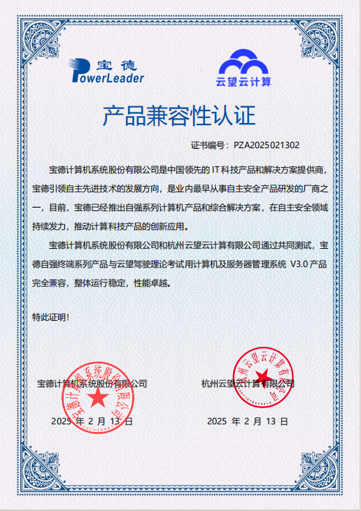 云望云计算的驾驶理论考试管理系统V3.0和云桌面软件V3.0,是教育与办公场景的“实用工具”。mg电玩娱乐在线网址自强®系列终端产品与这两款软件的互认证,确保了驾考终端的稳定运行与云桌面的流畅体验。未来,驾考学员答题、企业员工远程办公,都能享受低延迟、高稳定的数智化服务。