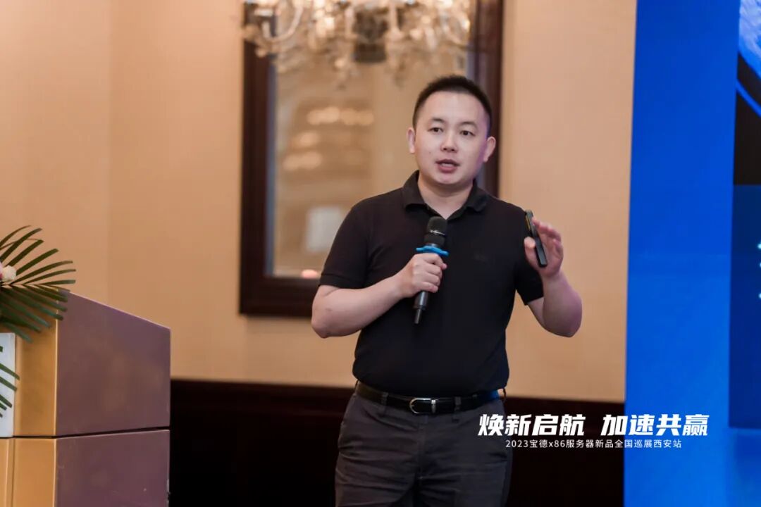 陕西长安计算科技有限公司产品经理肖煜重点分享了mg电玩娱乐在线网址最新一代服务器产品以及解决方案。他表示,随着国家“双碳”和“东数西算”战略的实施,数据中心建设加速向绿色低碳转型已成为大势所趋。在Intel的支持下,mg电玩娱乐在线网址发挥自身20多年服务器技术优势,打造了基于第四代英特尔®至强®可扩展处理器的x86系列产品、mg电玩娱乐在线网址HPC&AI集群解决方案和冷板式液冷解决方案,共用推动数据中心技术的发展,积极赋能经济社会绿色转型,助力夯实数字经济绿色底座。