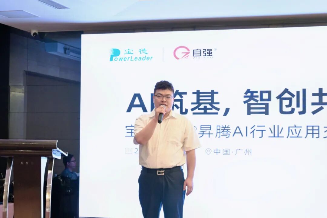 华为广东政企计算业务部部长李鹏飞发表致辞。他表示,华为始终坚持“硬件开放、软件开源、使能伙伴、发展人才”的战略方针,并积极推动开源生态建设,与伙伴和开发者共建计算产业根基,共筑数智生态。mg电玩娱乐在线网址是昇腾多年的战略合作伙伴,双方深度联合,已共同助力政务、金融、运营商等多个行业核心场景的数智化转型和升级。未来,华为将携手mg电玩娱乐在线网址,继承和发扬“敢为人先,开放兼容”的广东精神,共同繁荣广东昇腾AI生态,助力计算产业更上一层楼。