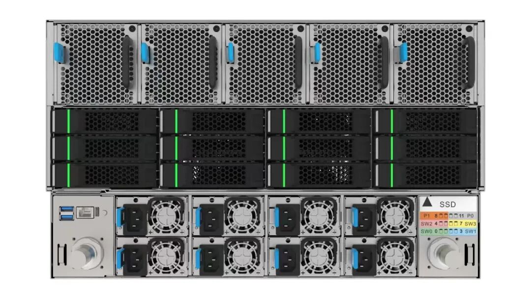 它配备8个2700W/3200W(N+N)冗余电源,效率达钛金级标准,支持BIOS菜单密码,结合RAID卡超级电容掉电保护,保障数据安全无虞。同时板载Intel C741芯片组与电信级器件,通过IPMI 2.0与智能调速技术,实现系统可靠性与能源效率的双重优化。