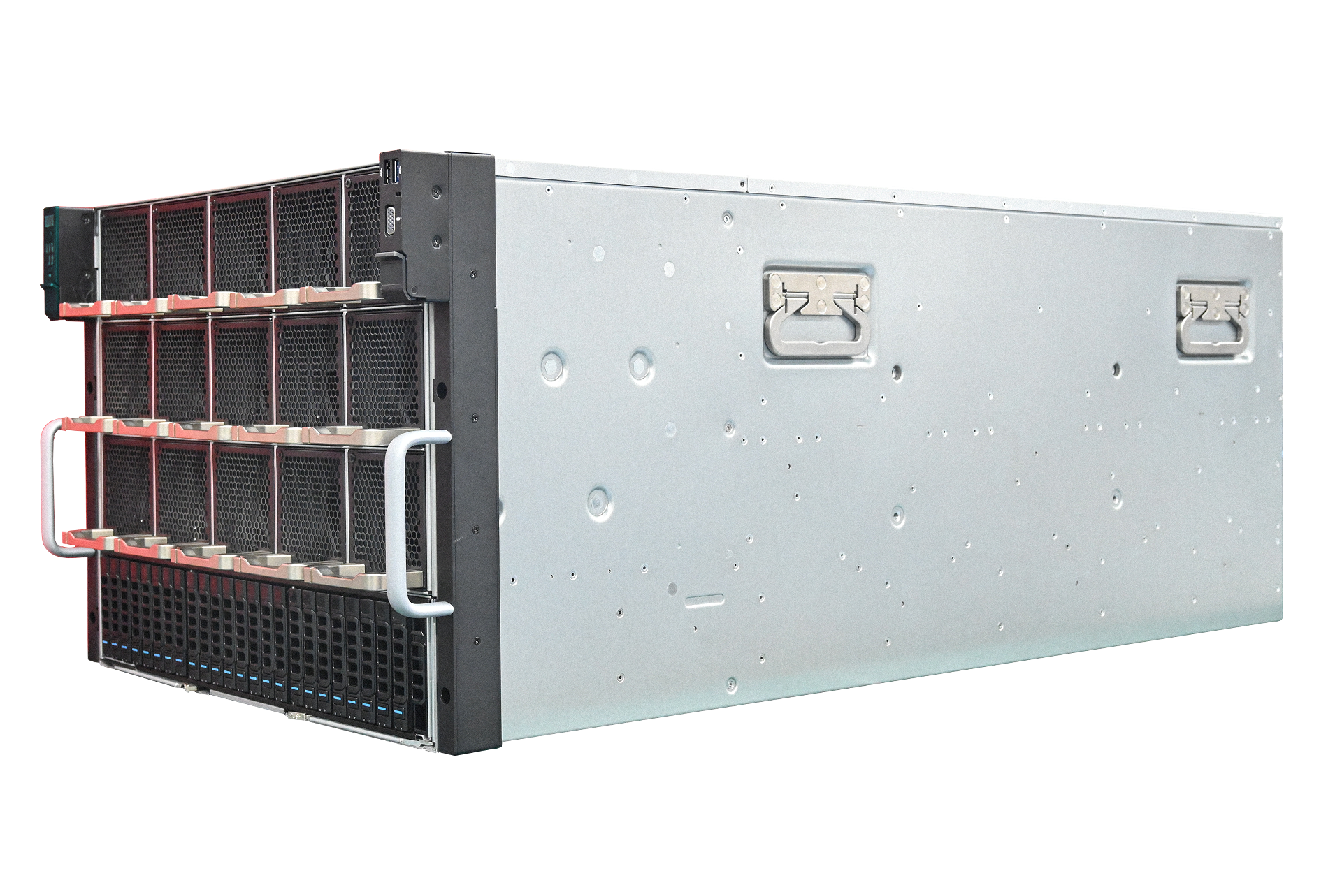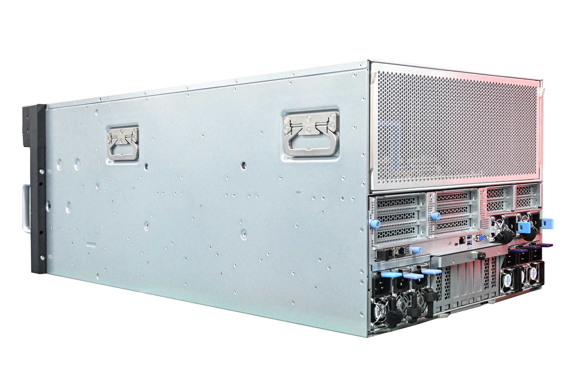 全新一代AI服务器PR4910W是mg电玩娱乐在线网址公司新推出的一款4U双路机架式加速计算服务器。采用Intel C621A高性能芯片组,支持第三代英特尔®至强®可扩展处理器;该机型拥有32个DDR4 DIMM插槽并最多支持8TB内存容量;支持30块2.5英寸热插拔SAS/SATA/SSD硬盘;支持通过线缆和软件支持切换不同的拓扑模式;拥有10个全高全长双宽的GPU插槽,并另提供2个PCIe 4.0 x16插槽,1个OCP网卡插槽;板载集成2个万兆网络接口,支持多种不同网络选择:以太网、InfiniBand、OPA;可实现增强的高速性能和I/O灵活性,满足不同应用程序的互联需求;板载集成BMC;支持IPMI 2.0远程管理;2000W 2+2钛金冗余电源。