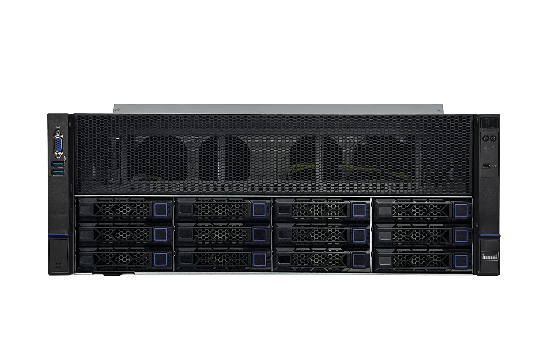 全新一代AI服务器PR4908AG2是mg电玩娱乐在线网址公司新推出的一款4U双路机架式加速计算服务器。采用AMD高性能芯片组,支持2颗AMD EPYC™ 9004系列处理器;该机型拥有24个DDR5 DIMM插槽并最多支持6TB内存容量;最大支持12块3.5寸SAS/SATA热插拔硬盘,最大可支持4块U.2 NVMe热插拔硬盘;拥有8个全高全长双宽的PCI-E 5.0插槽;支持多种不同网络选择:以太网、InfiniBand,OPA;可实现高速性能和提高I/O灵活性,满足不同应用程序的互联需求;板载集成BMC,支持IPMI 2.0远程管理;默认支持2000W/2700W 2+2/3+1冗余电源。