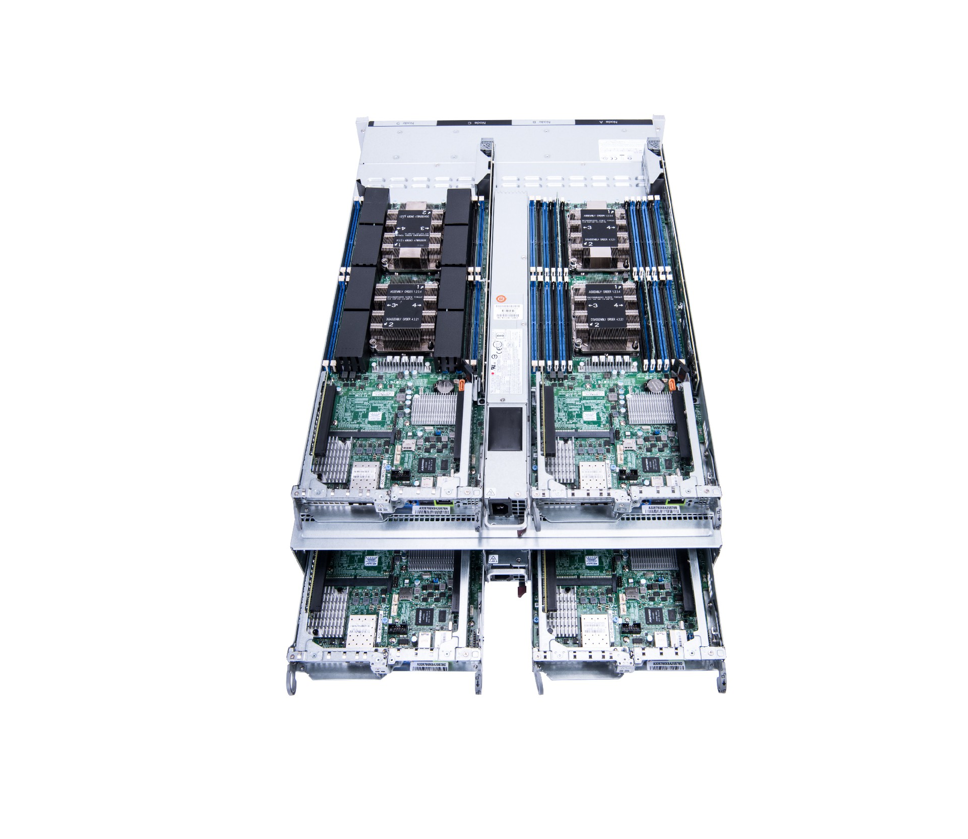 2U四节点服务器适用于传统数据中心前后气流散热设计和标准19英寸工业机柜。