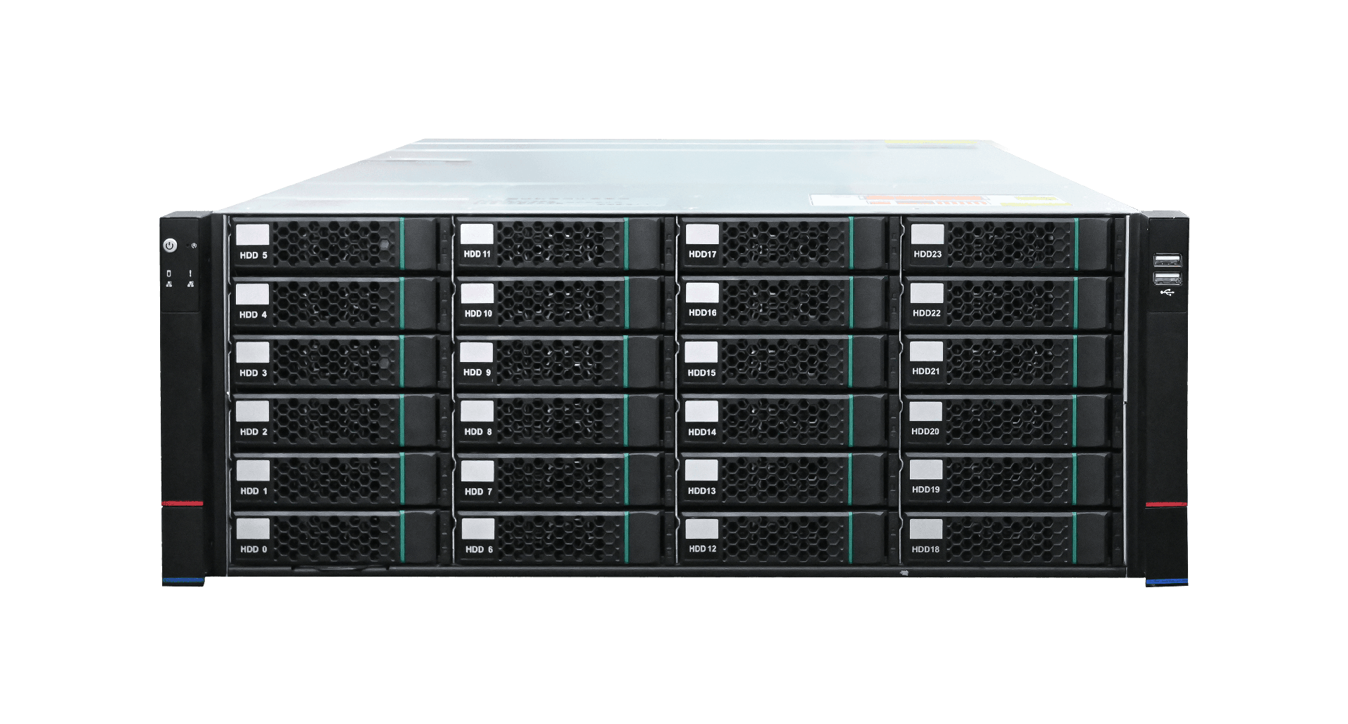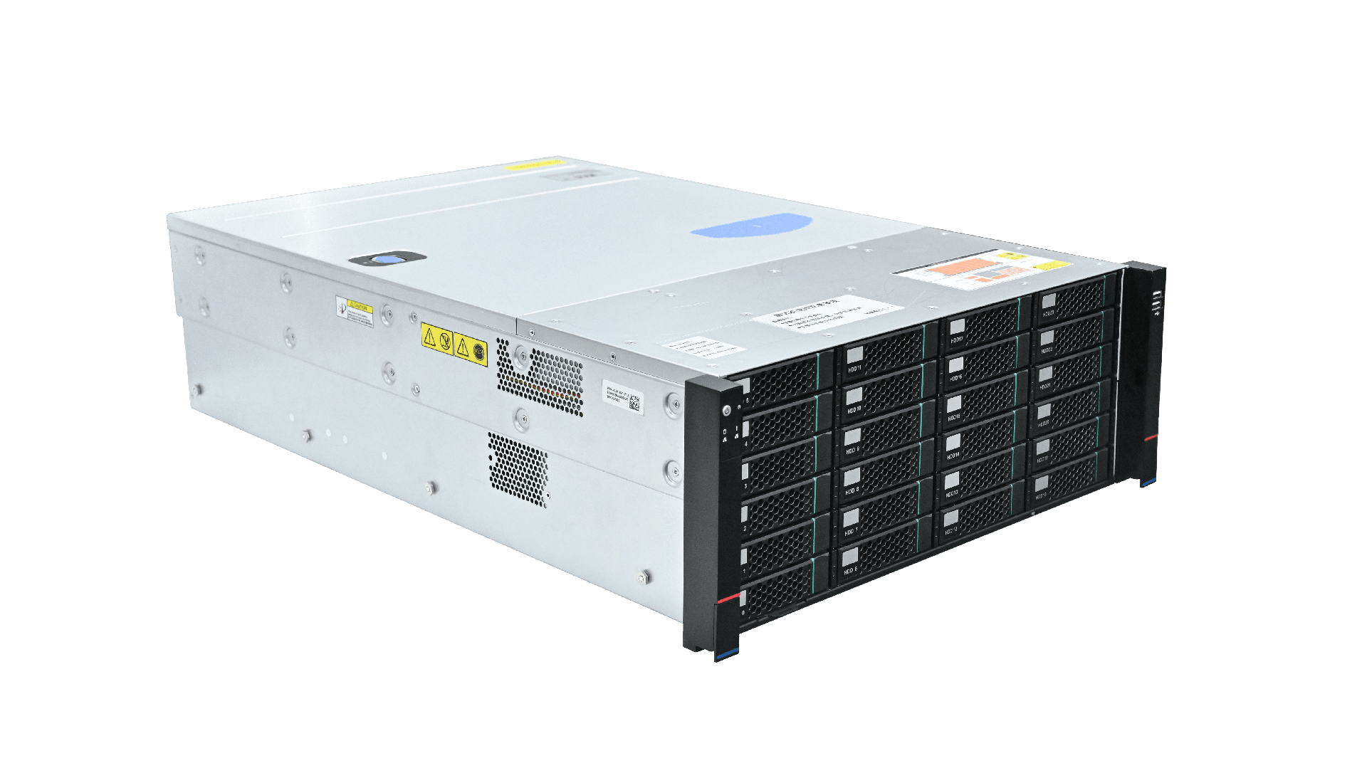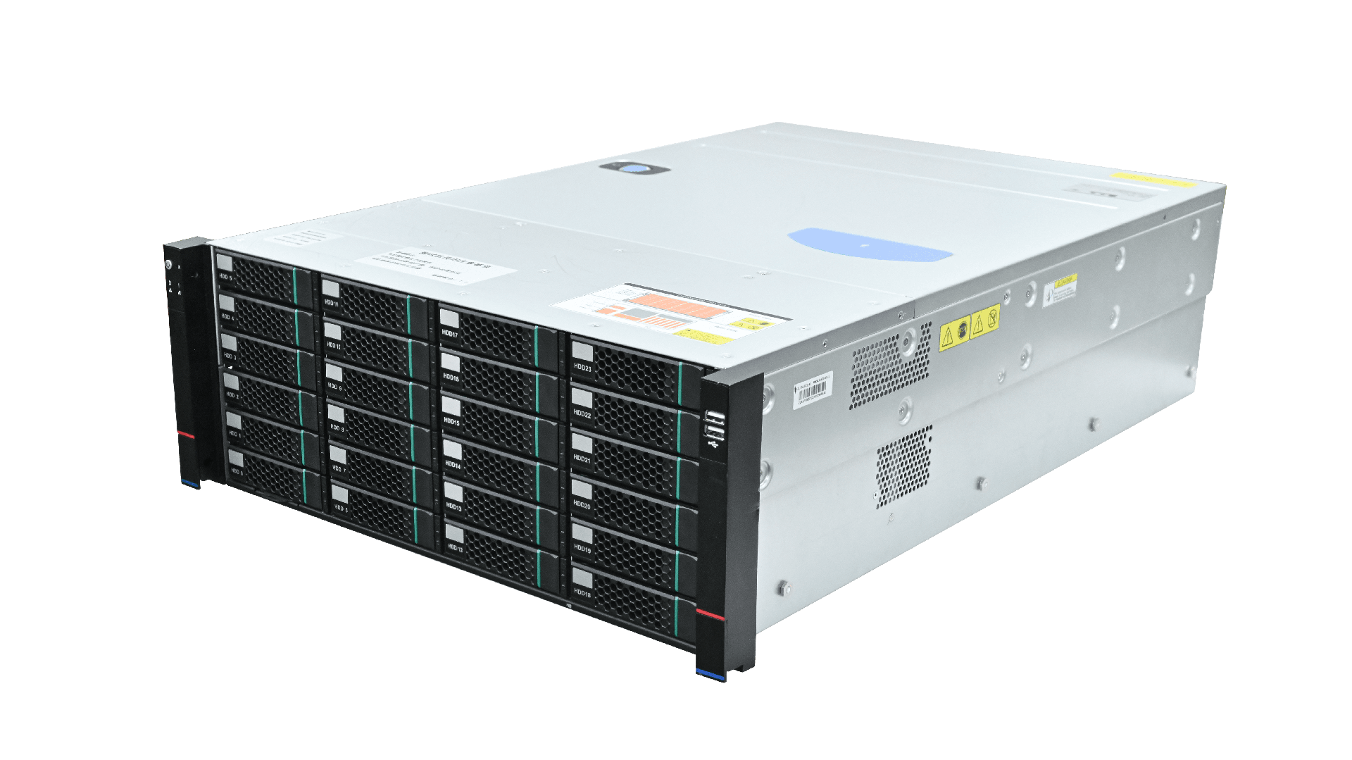 | 硬盘 | 24个3.5/2.5寸硬盘(前置热插拔),内置2个2.5寸硬盘,可外接SAS扩展卡支持SAS硬盘。——满配需加RAID卡 |