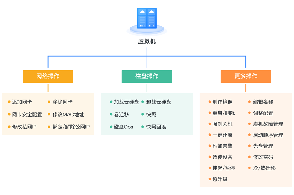 PLCloud云管平台提供完整的虚拟机生命周期管理,支持虚拟机的创建、修改、启动、重启、关机、迁移、快照等常用功能,同时支持通过管理界面的控制台远程连接到虚拟机。并提供虚拟机故障管理功能,可针对某些重点业务主机,提供虚拟主机故障转移及目标锁定功能,可实现对任何虚拟机进行保护以防止主机发生数据、事务或连接丢失等故障。