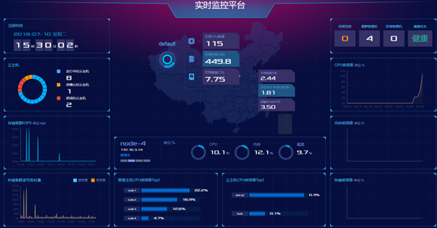 支持大屏监控能力,通过PLCloud云管平台在一个页面来展示当前平台及多个平台资源状态显示,使得日常使用及运维更加得心应手。