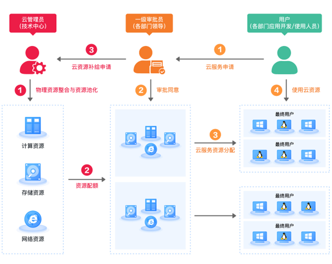 身份管理功能模块按照企业日常管理的视角,支持企业创建符合本企业组织结构的部门;并支持基于部门进行资源分配;支持企业基于部门、项目以及项目成员划分角色(包括部门管理员、项目管理员、普通用户);支持基于角色进行云计算管理平台系统功能的授权。