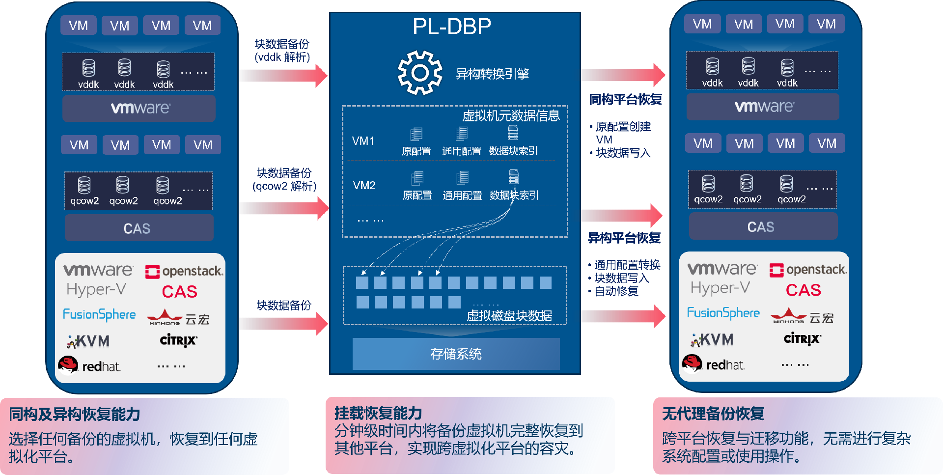 mg电玩娱乐在线网址PL-VDP虚拟化运维仿真系统在虚拟化云计算环境下,支持VMware,Huawei FusionCompute,H3C CAS,SANGFOR HCI等云平台虚拟机抽取与仿真,将主机操作系统、应用及数据组织为虚拟机形式,实现快速数据抽取,可提供主机即时仿真、业务仿真、应急接管、远程容灾等多种保护方式,从而提高数据抽取与仿真效率,降低管理复杂度。