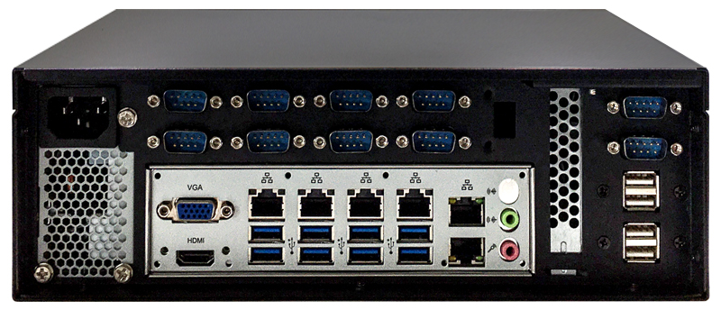 | 接口 | 1*HDMI,1*VGA 10*COM,其中COM1/2支持RS-232/485模式选择 8*USB3.0接口,5*USB2.0接口 1*J_LPT/GPIO排针,支援LPT功能,可提供16路GPIO路控制(LPT与GPIO功能二选一使用) Mic-in,Line-out(可选) 预留ATX开关外引线材接口(风凰端子排连接器) |